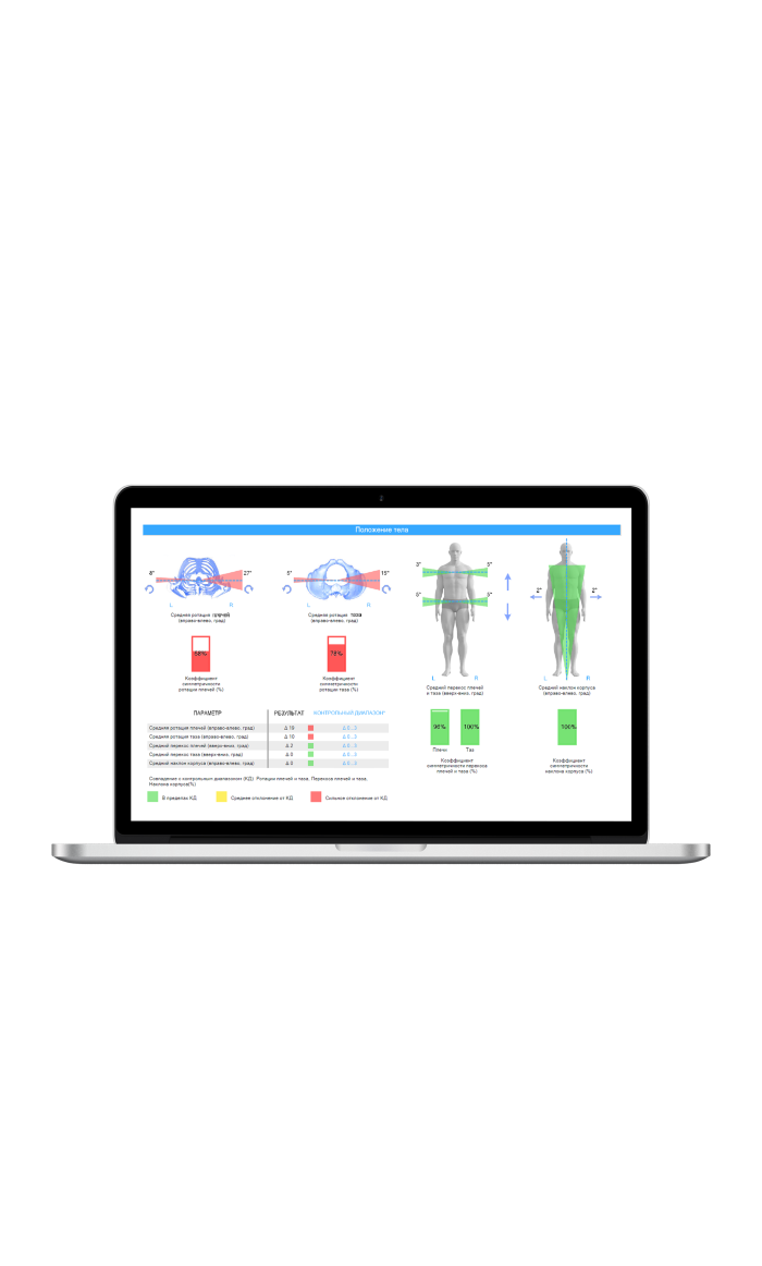— детальный отчет с более чем 60 биомеханическими параметрами тела;